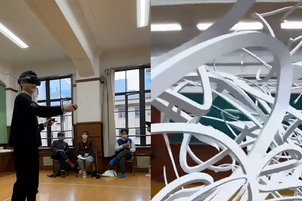 2023年3月26日、京都芸術センターで公開制作を実施し、絵画、サウンド・インスタレーション、VR/ARという異なる表現領域が交差する実験の様子をご覧いただきました。