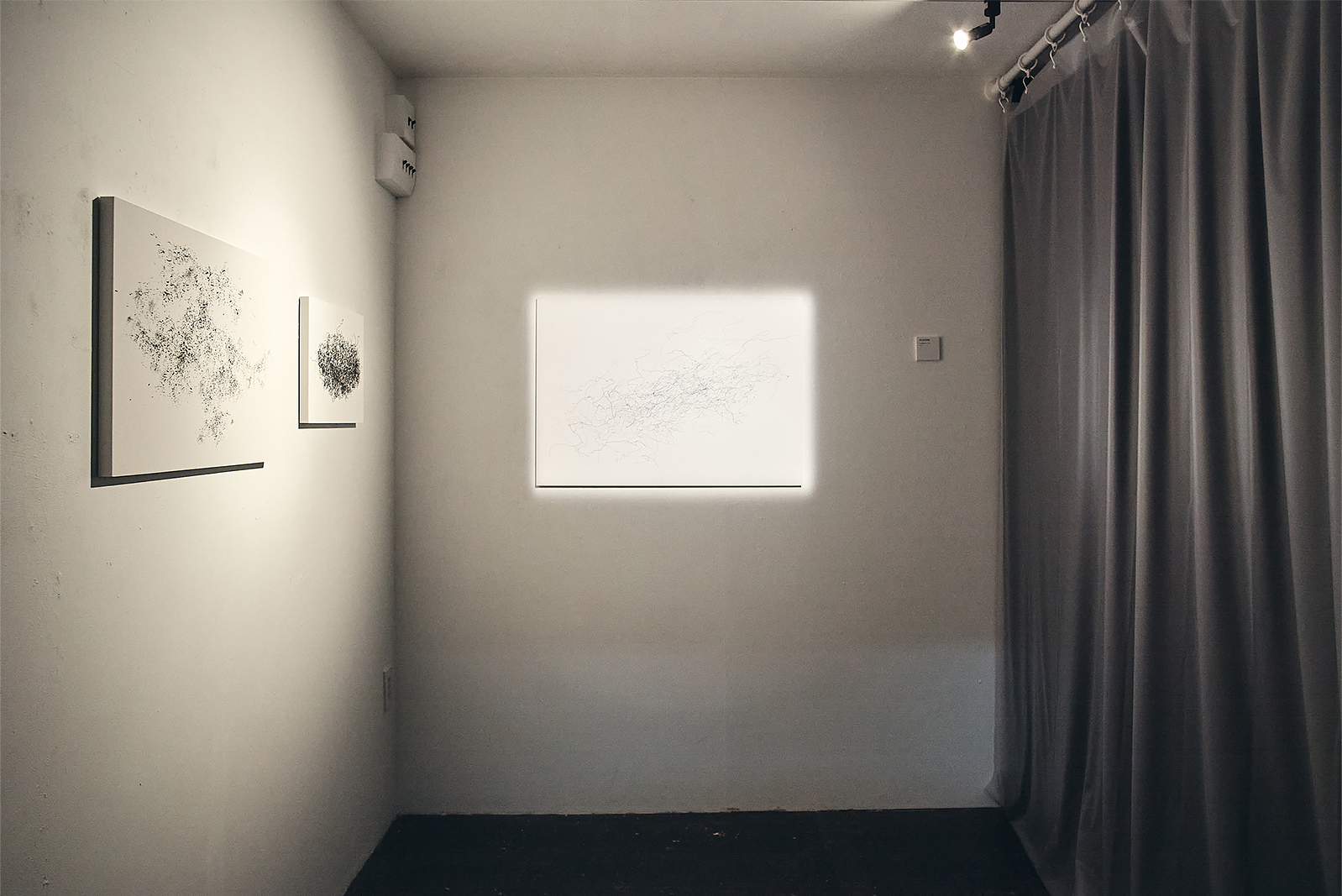 これまで公開制作やワークショップなどを実験的に行なってきた「空間へのドローイング」というプロジェクトを、初めて展示という形で発表しました。